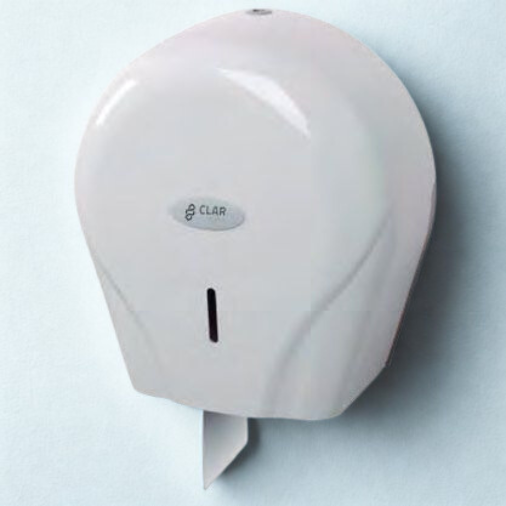 El dispensador de papel higiénico industrial TRENDY ABS Blanco/Gris Ø240 admite rollos de hasta Ø240 mm de diámetro y mandril de Ø45 mm. Gracias a esta capacidad, se reducen los recambios frecuentes y se optimiza el mantenimiento en baños de alto tránsito.