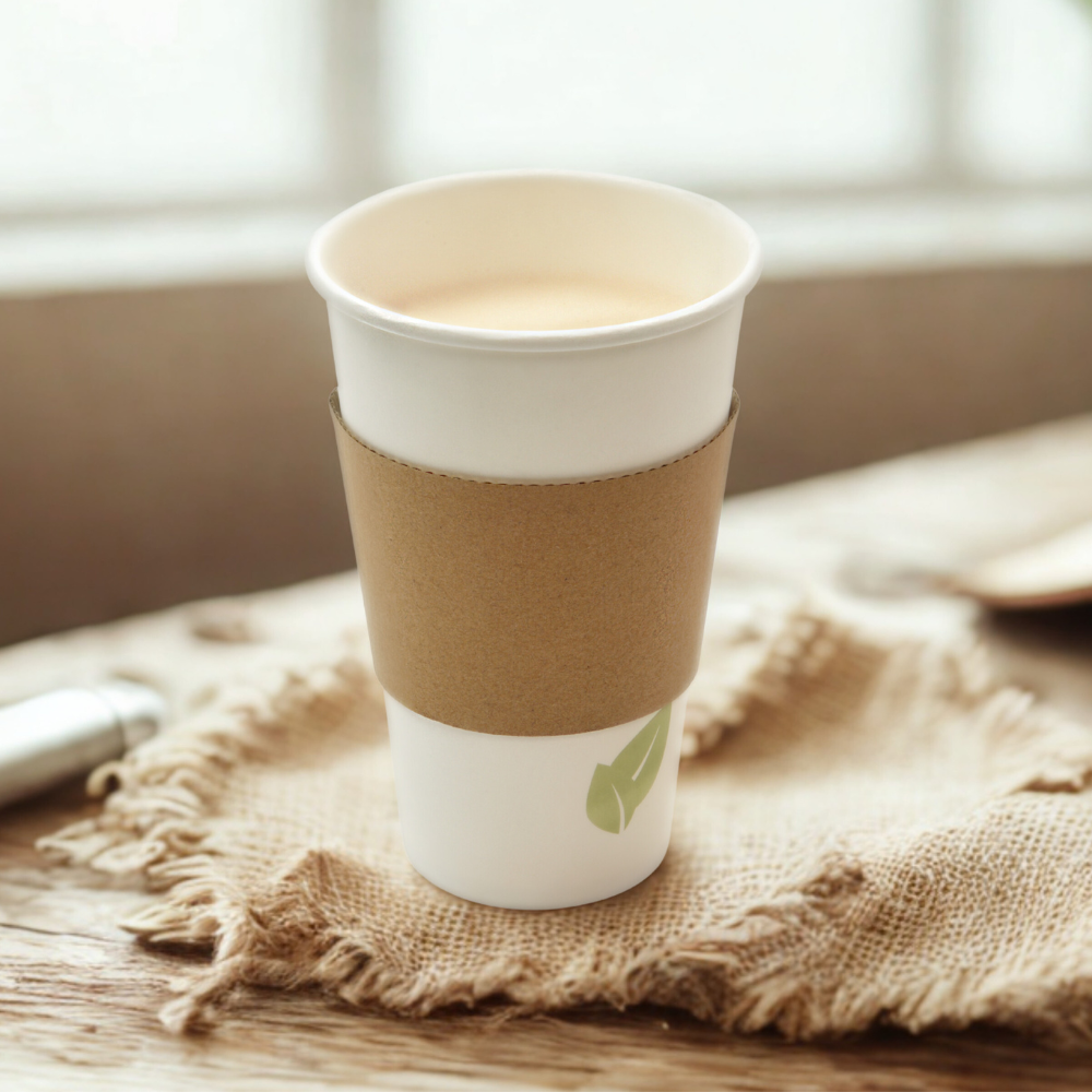 El acabado en color kraft aporta un aspecto natural y sostenible, en línea con las nuevas tendencias ecológicas en el sector de la hostelería. Por lo tanto, la funda aislante para vasos 12-16 oz no solo mejora la seguridad térmica, sino que también refuerza la imagen ecológica de tu negocio.