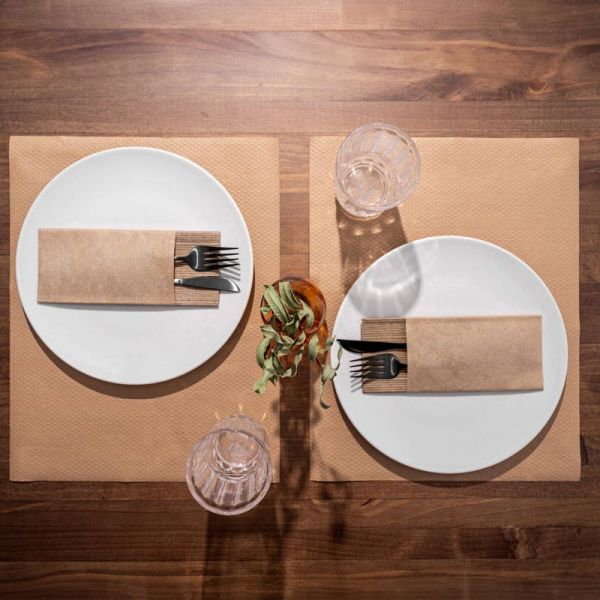 Manteles individuales 30×40 kraft verjurado gofrado de 35g, resistentes y con acabado verjurado gofrado. Ideales para hostelería, aportan higiene y un estilo natural en cada servicio.