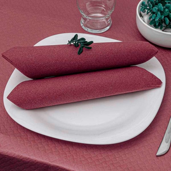 El tono burdeos es sinónimo de sofisticación y calidez, ideal para ocasiones formales, cenas de gala, celebraciones familiares o entornos profesionales donde se quiere transmitir exclusividad. Además, su diseño y textura ofrecen una apariencia similar a la tela, aportando un valor añadido frente a las servilletas tradicionales de papel.